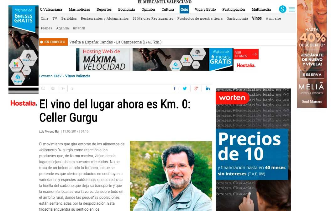 En este artículo publicado en el periódico Levante, El Mercantil Valenciano, hablan de los vinos de Celler Gurgu, como un producto KM.0, de proximidad, autóctono, de origen,… con el que poner en valor los productos de nuestra tierra.